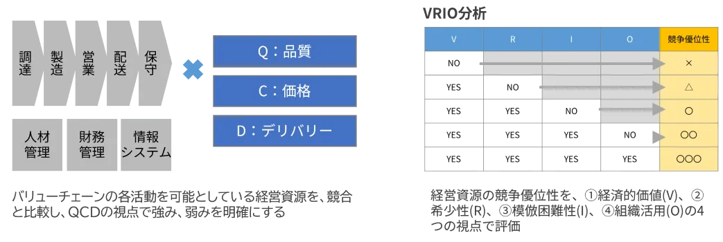 強みと弱みを可視化し、持続的競争優位を形成するためのリソース構造を明確化します。