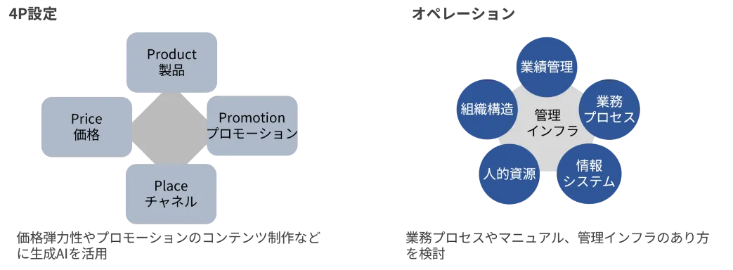 4P分析を通じて、製品・価格・チャネル・プロモーションの最適化を検討します。